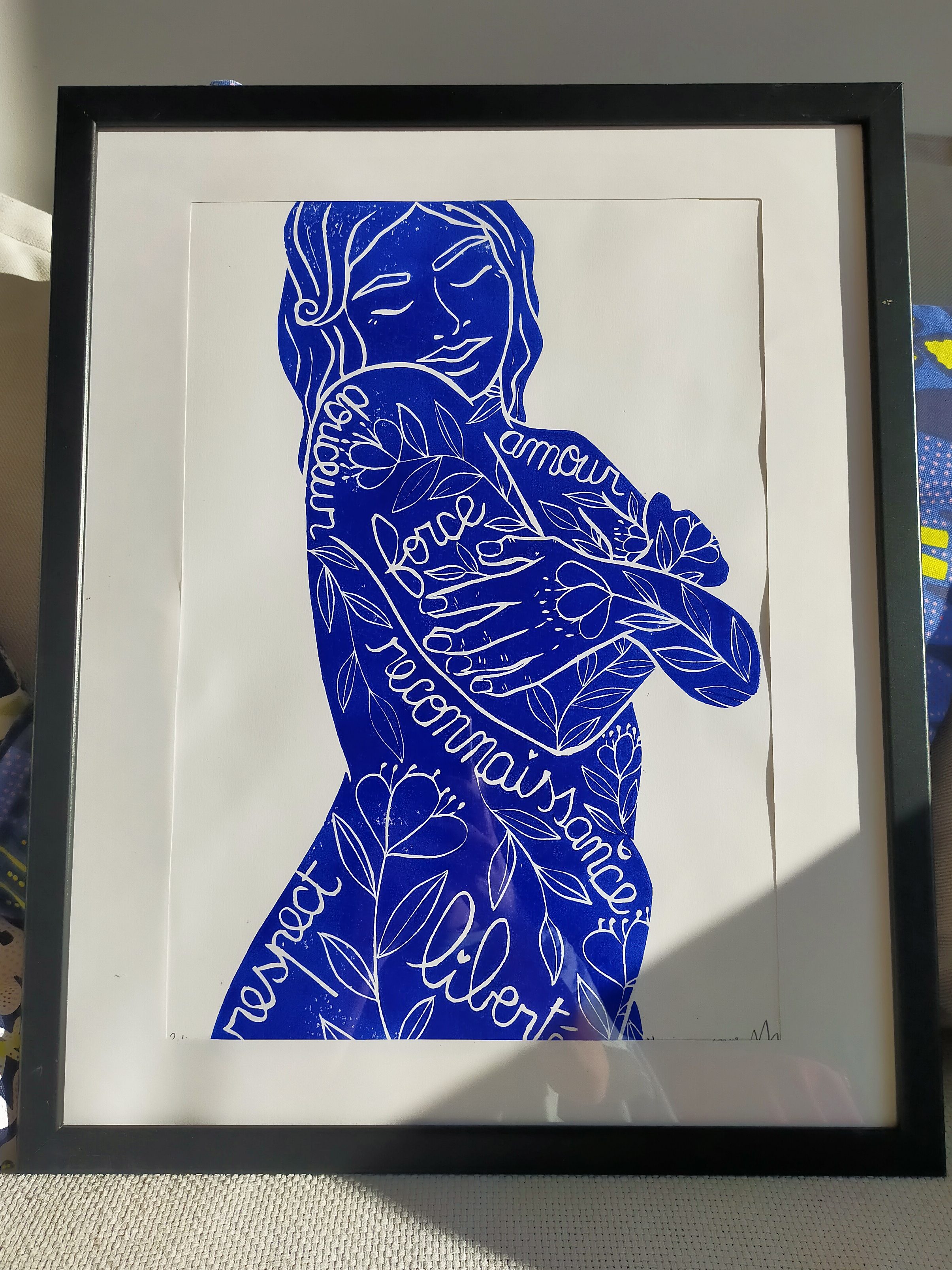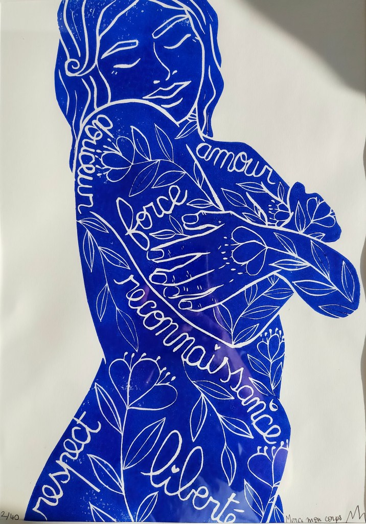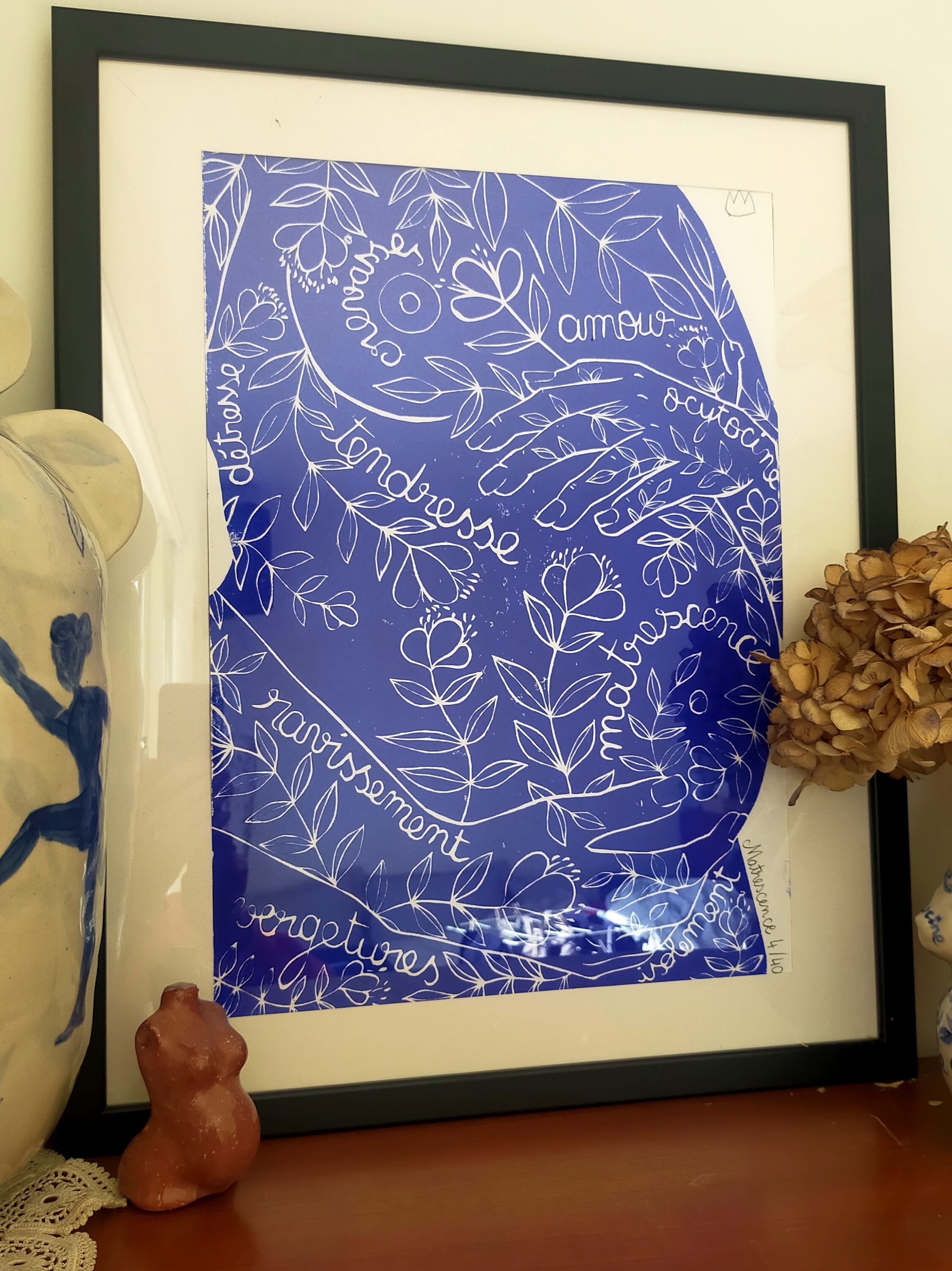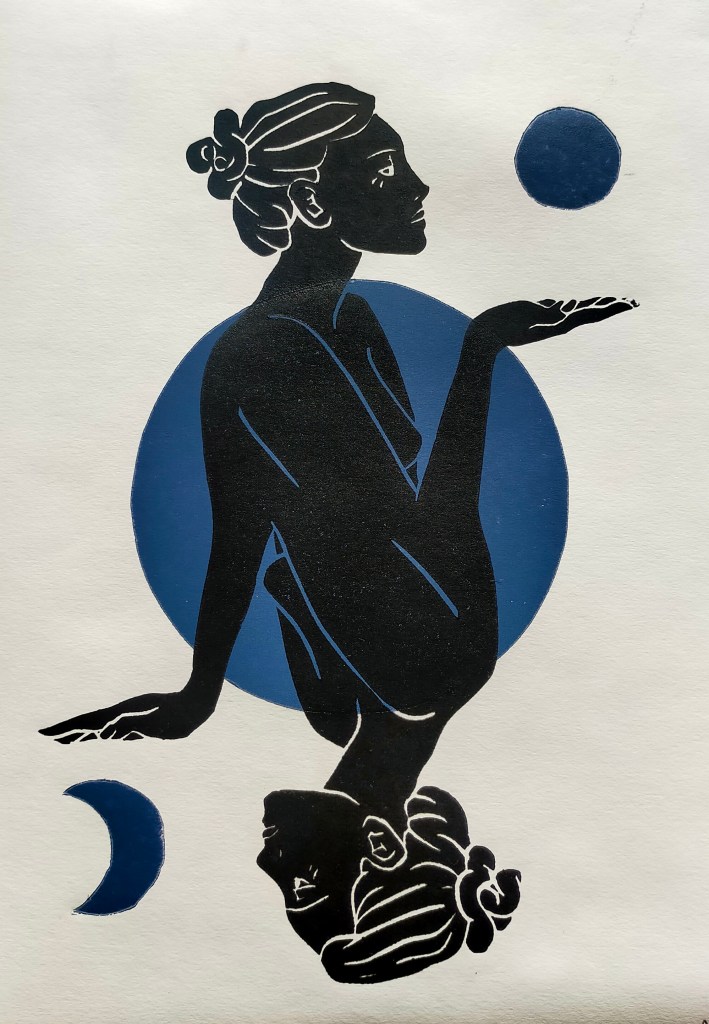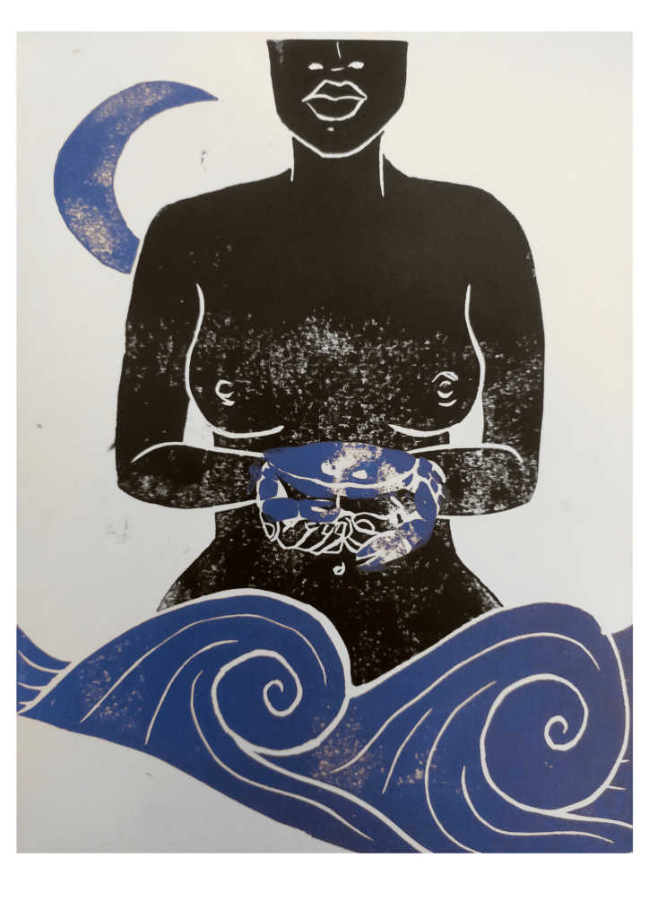 Se Laisser porter par les vagues, Linogravure, A4, 2023