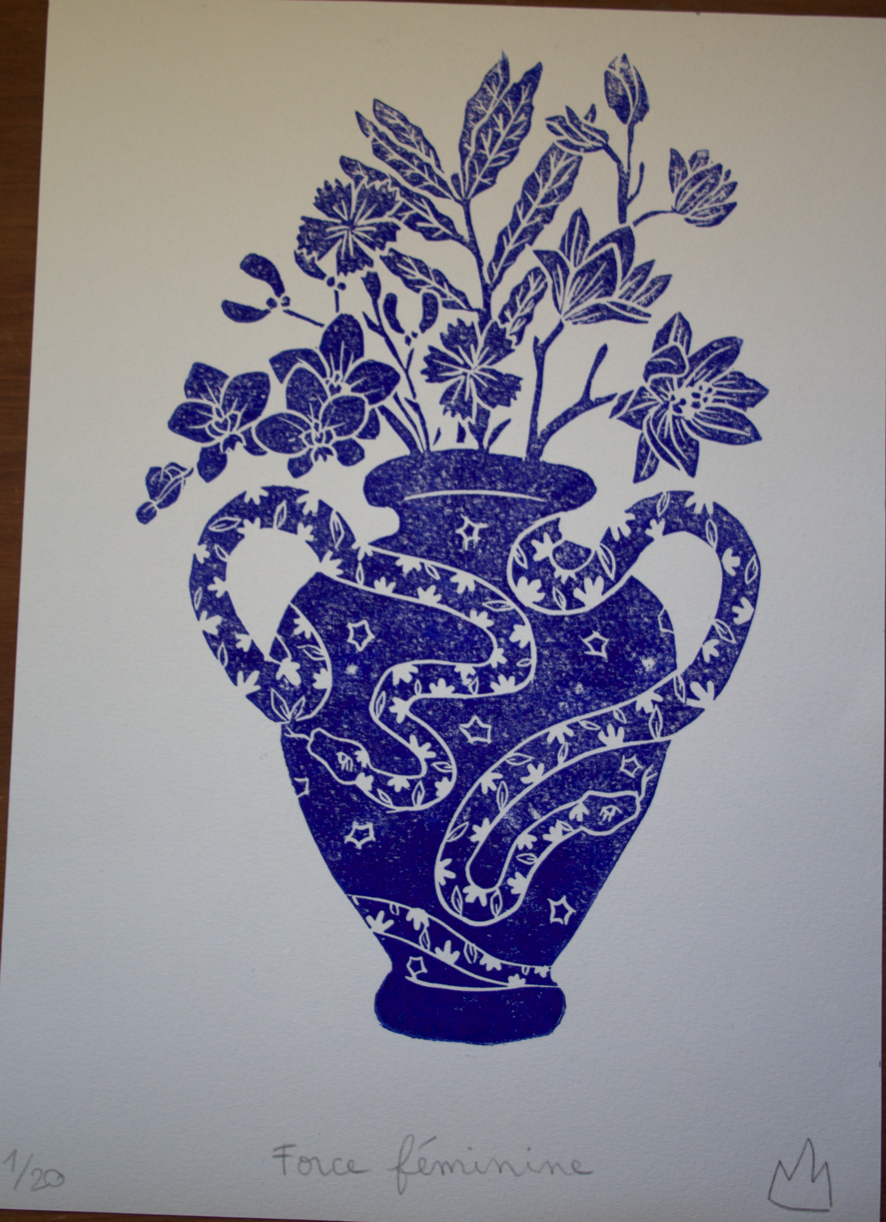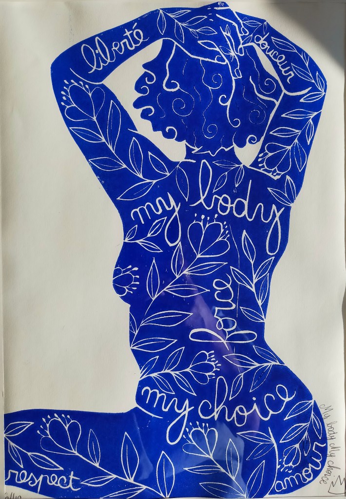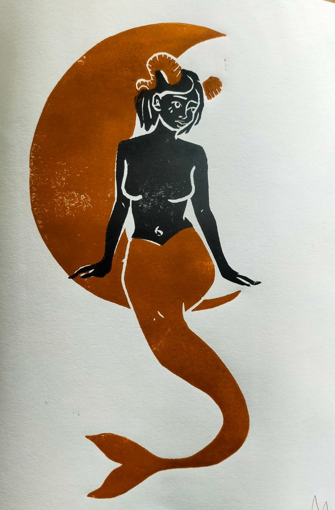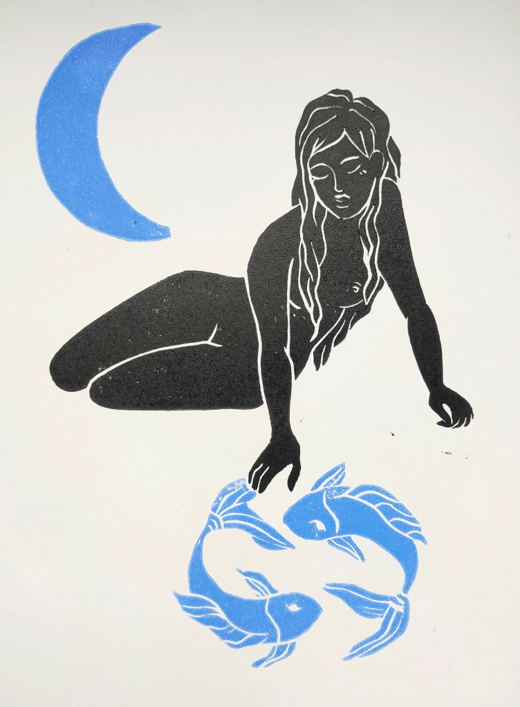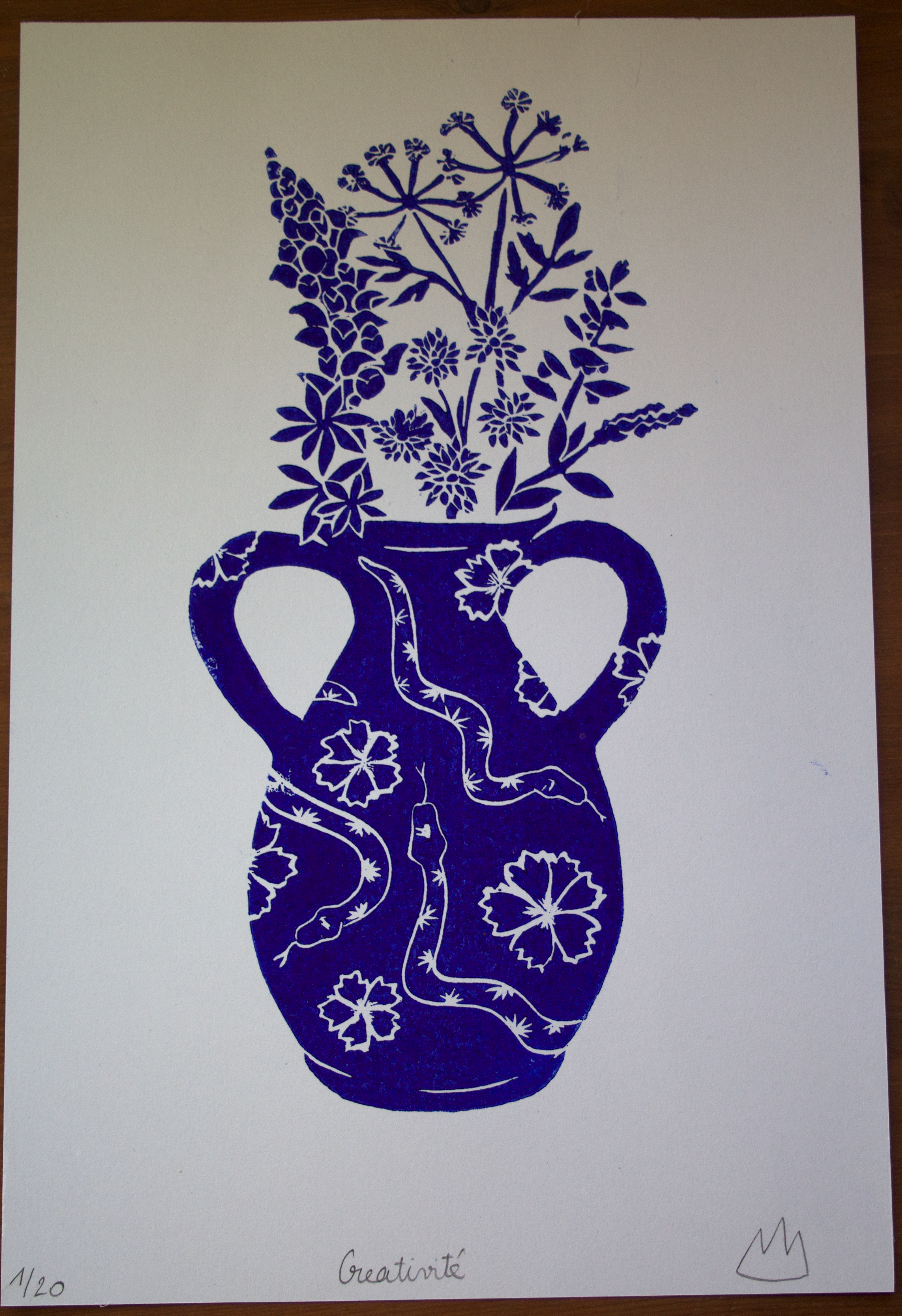 Se Laisser porter par les vagues, Linogravure, A4, 2023