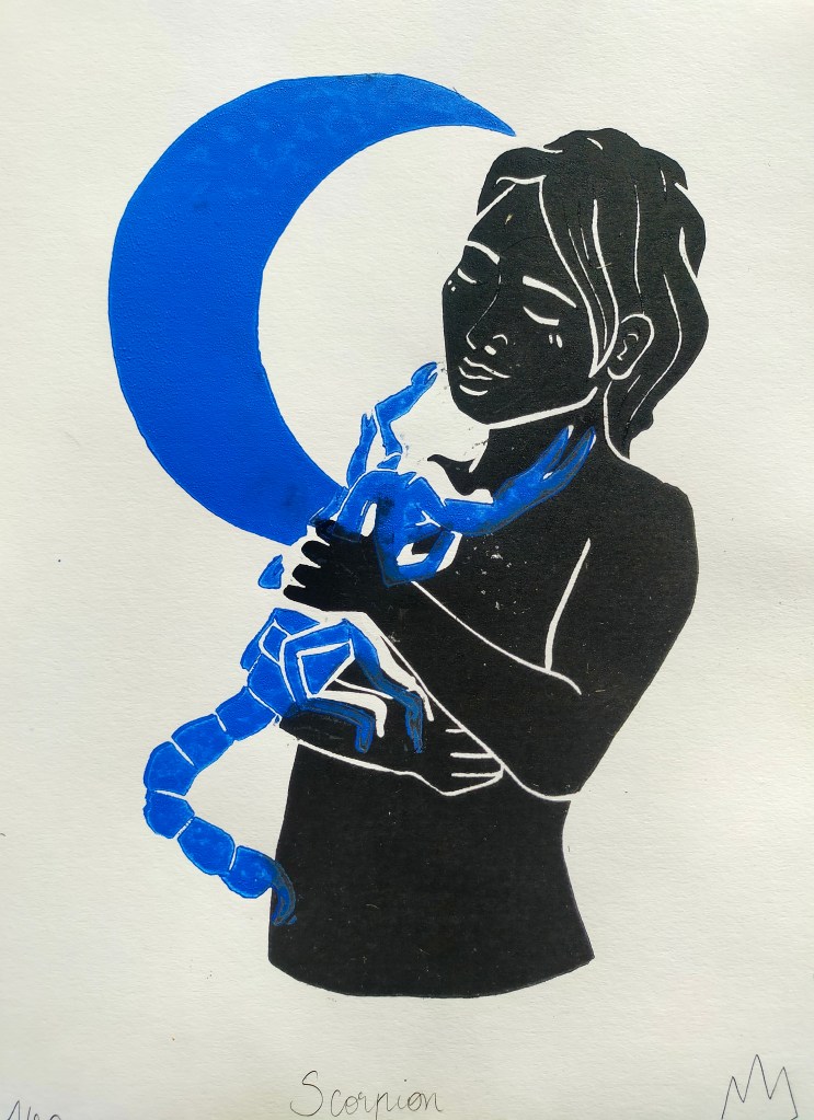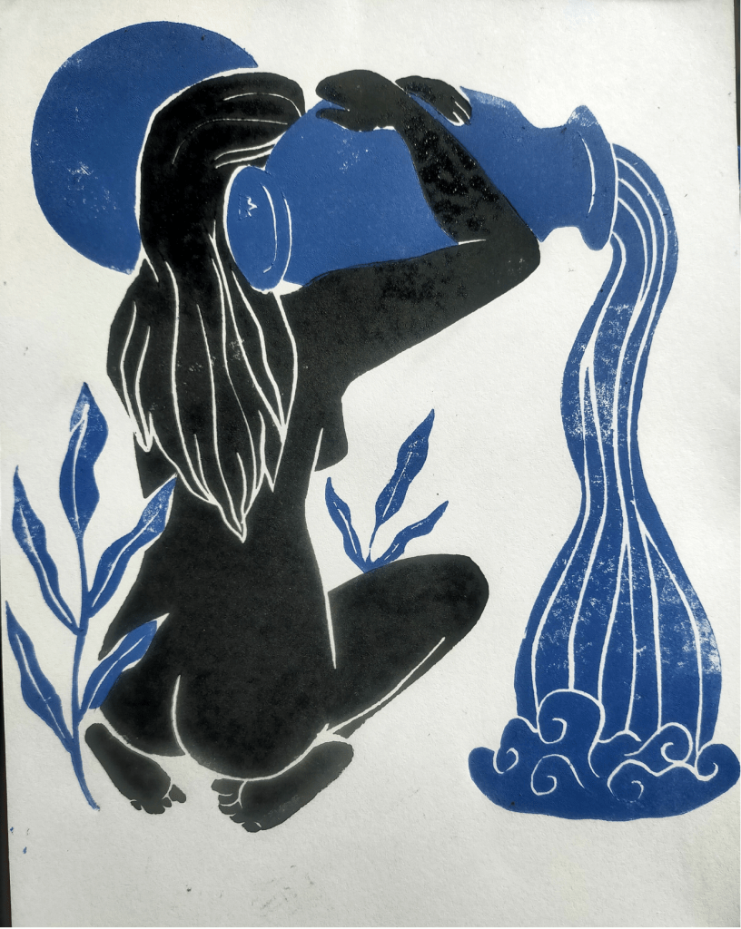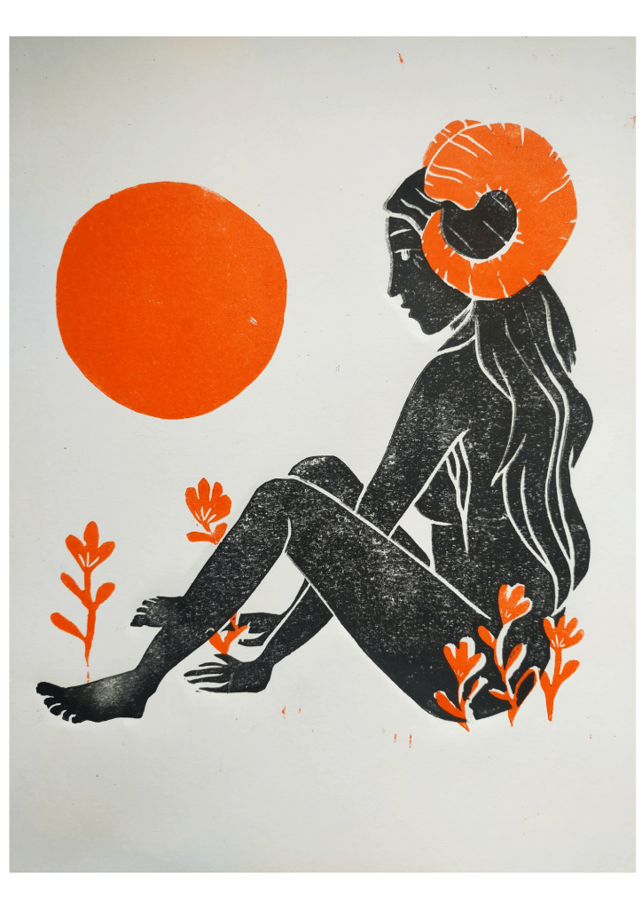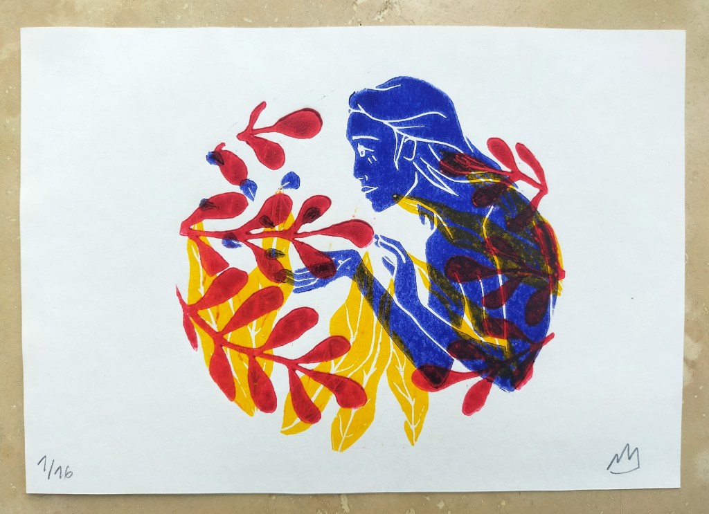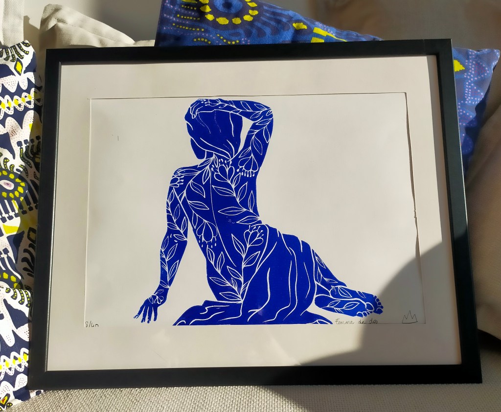 Se Laisser porter par les vagues, Linogravure, A4, 2023