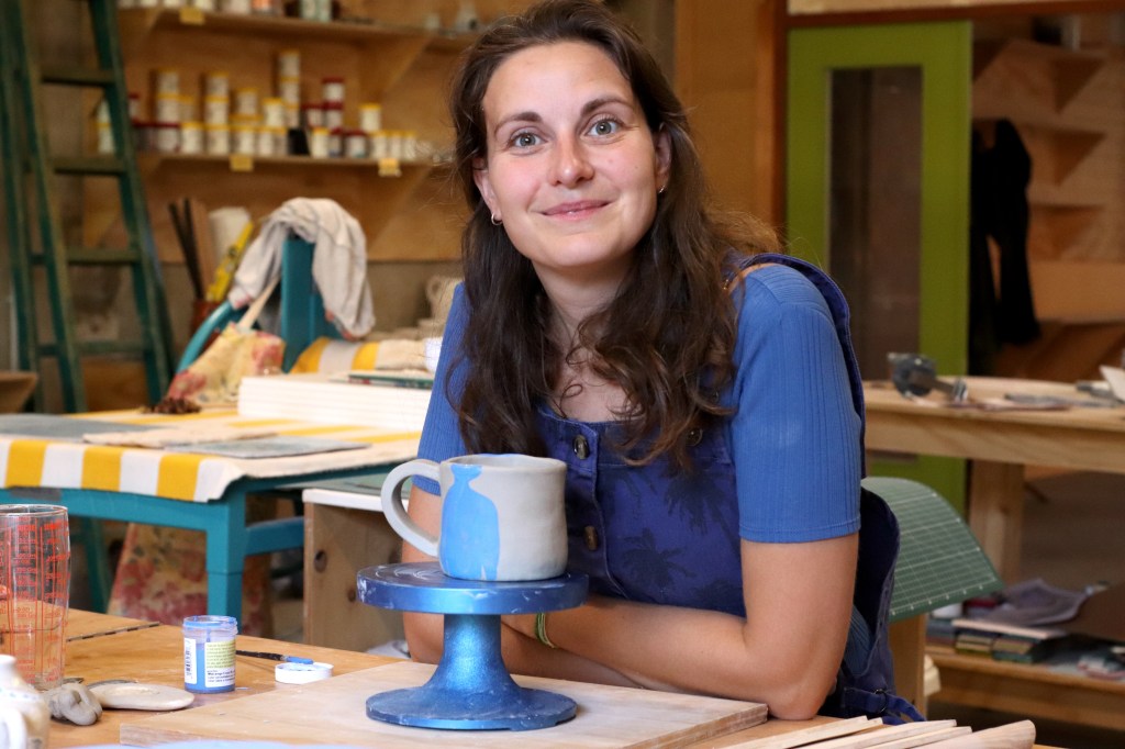 Dans mon atelier grenoblois, je travaille principalement la céramique et la linogravure afin de créer des œuvres qui se trouvent à la limite entre l’art et l’artisanat, mettant en priorité le processus de création. En modelant et en gravant, je construis ma réflexion sur le rapport à soi et sur la force, la puissance et la beauté des femmes.